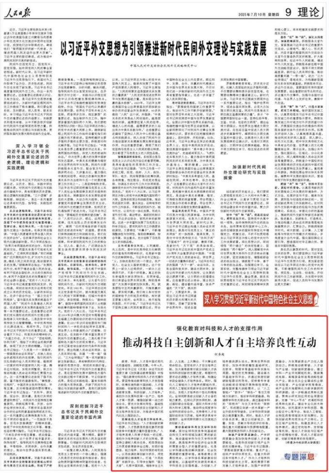7月10日,《人民日报》理论版刊发bat365何秀超教授署名文章《强化教育对科技和人才的支撑作用 推动科技自主创新和人才自主...