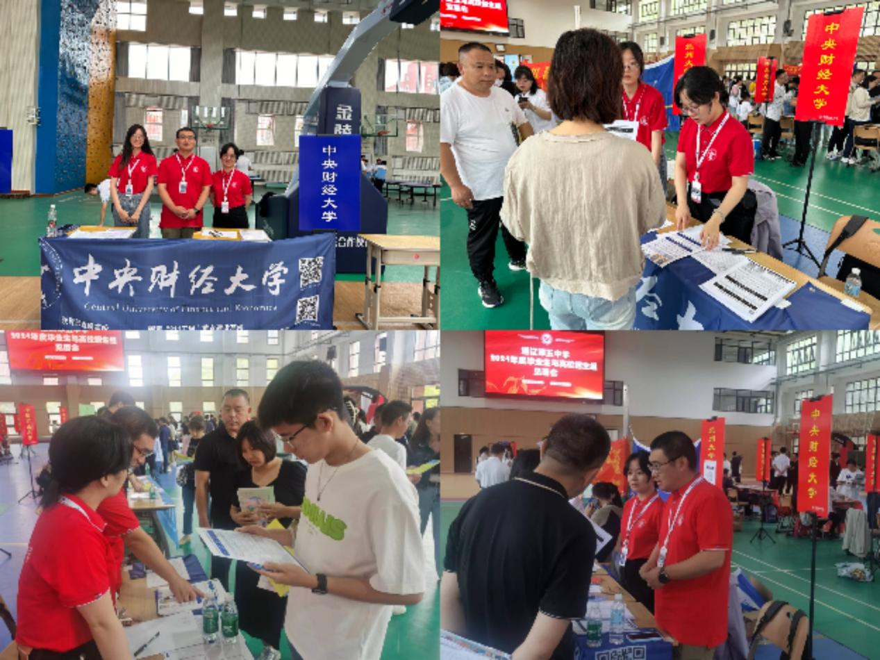 呼和浩特市招生组由党委书记于鹏教授带队,学院MPA中心副主任温锋华副教授、公共事业管理系副教授毕鹏程、国际政治系教师耿喜梅、2023级MPA研究生刘新宇,2021级信息学院本科生郑尔雅参与招生宣传。招生组老师和同学先后赴呼和浩特市第一中学、呼和浩特市第二中学和内蒙古师范大学附属中学开展招生咨询,为考生和家长提供全面、准确的咨询服务,耐心解答考生和家长关心的问题。在呼市的中财校友迅速响应、积极配合、主动支持母校招生工作。同时,于鹏书记与内蒙古自治区校友联络处代表进行了座谈,感谢校友们对母校的关心与支持,并详细介绍了学校近年来在学科建设、师资力量、科研成果等方面所取得的显著成就和未来发展规划。