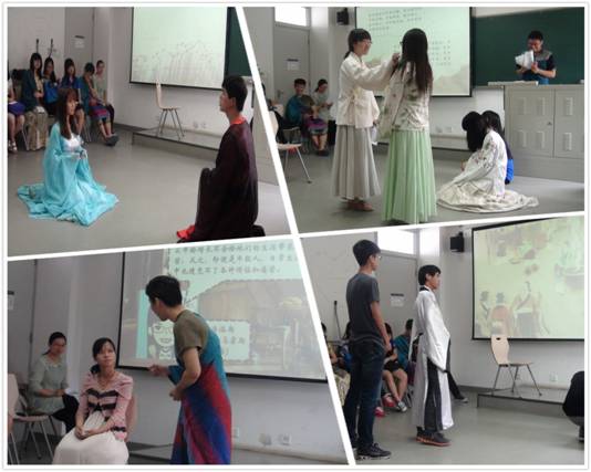 6月8日,13级国际政治专业同学在学院3号楼创作和表演了大型古装情景剧,令人耳目一新。整个过程长约40分钟,由“孔老论道”和“墨悲丝染”、“孔子施教”、“苏格拉底”4场组成。借助情景剧的形式,同学们将剧中人物表演的栩栩如生,令观众仿佛置身于古代情境之中,艺术地再现了中外古代先贤们的哲学和政治思想。