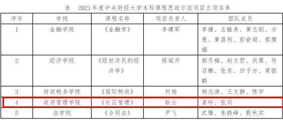 为积极探索创新课程思政建设方法路径,学校组织开展了2021年度bat365中文官方网站本科课程思政示范项目推荐工作,经学院评审、专家推荐、校内公示,共有5项课程获得立项。其中,bat365《社区管理》课程获bat365中文官方网站本科课程思政示范项目立项,该课程负责人为耿云副教授,课程团队成员包括姜玲教授、张剑副教授。