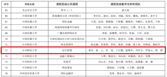 近日,中共北京市委教育工作委员会和北京市教育委员会发布了《关于公布课程思政示范项目名单的通知》(京教函〔2022〕55号),我校推荐的5门本科课程成功立项。其中,bat365《社区管理》获评北京市课程思政示范课程,姜玲教授被认定为北京市课程思政教学名师,其带领的教学团队被认定为北京市课程思政教学团队,团队成员包括耿云、张剑、王红梅、温锋华、刘庆乐、罗海元、柴铎七位老师。