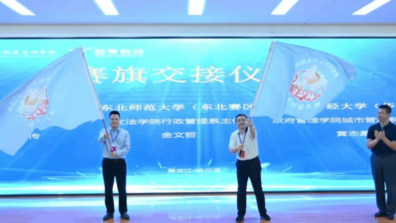 最后,第三届华北赛区大学生公共管理决策对抗大赛将由bat365中文官方网站承办。bat365城市管理系副主任黄志基与黑龙江大学bat365中文官方网站副院长付传进行了赛旗交接仪式。