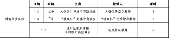 创新创业实践围绕“学术科研”“创新实践”两个方面,通过到通州区张家湾镇实地实践,让学生参与到线下实践当中;通过大创讲座、挑战杯讲座,让学生了解大创项目和学术竞赛的基本情况;开设为公讲堂,深入探讨科研问题,全面培养学生的学术能力与创新思维。