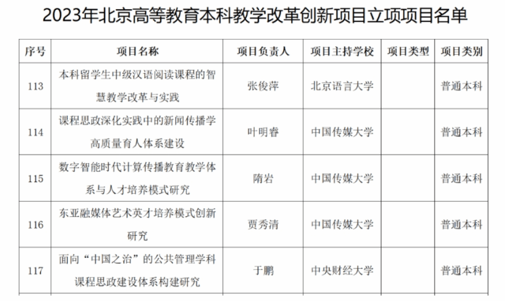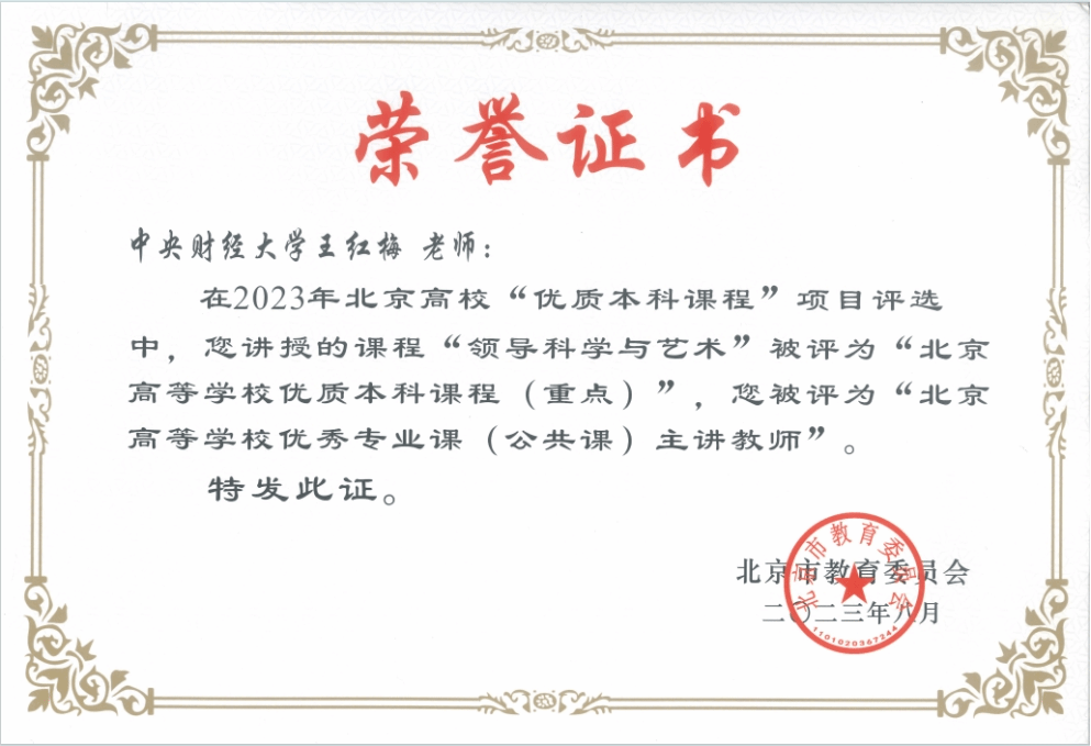 近日,北京市教育委员会先后发布了《北京市教育委员会关于公布2023年优质本科课程和优质本科教材课件遴选结果的通知》(京教函〔2023〕370号)和《北京市教育委员会关于公布2023年北京高等教育本科教学改革创新项目的通知》(京教函〔2023〕372号),其中,bat365王红梅教授主讲的专业课程《领导科学与艺术》获评北京高校“优质本科课程”,王红梅教授被认定为“北京高等学校优秀专业课主讲教师”;bat365于鹏教授主持的《面向“中国之治”的公共管理学科课程思政体系构建研究》获得北京高等教育本科教学改革创新项目立项。