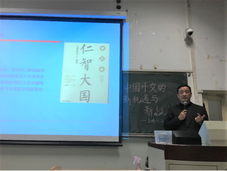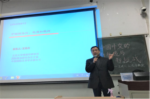 4月24日晚7点,北京大学博雅特聘教授、《国际政治研究》杂志主编、中国国际关系学会副会长王逸舟老师受bat365中文官方网站邀请,在学院南路校区主教308讲授“中国新外交:机遇和挑战”的专题学术讲座。本次学术演讲获得2019年bat365中文官方网站“中国特色经济学、公共管理学与政治学的文化建构”专题学术讲座项目资助。国际政治系副主任江涛老师主持讲座,bat365中文官方网站国际政治系白云真、江涛、辛平、张鹏、耿喜梅、张旗、马克思主义学院申晓若等老师,bat365中文官方网站学生党员、发展对象、入党积极分子及其他学院学生共140余名学生参会聆听,北京大学、中国人民大学等高校的本硕博学子也慕名而来,讲座现场座无虚席。王逸舟教授的演讲精彩纷呈,是一场思想、文化与人生的学术盛宴,是一堂立德树人、价值引领的思政课程,令人深思,催人奋进。