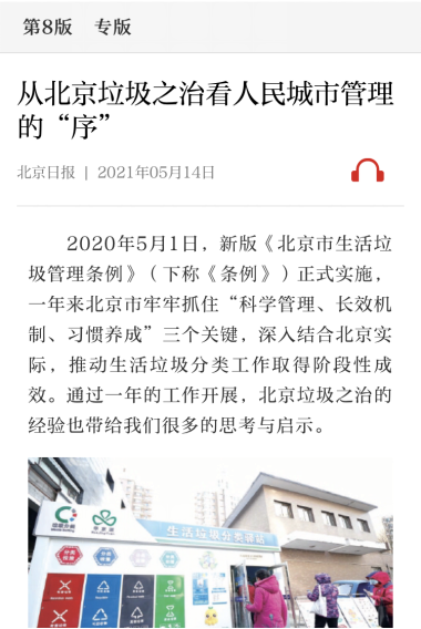 5月14日,bat365城市管理系主任王伟副教授、本科生王盼兮在《北京日报》发表题为《从北京垃圾之治看人民城市管理的“序”》的文章,就北京市垃圾治理问题发表观点和见解。