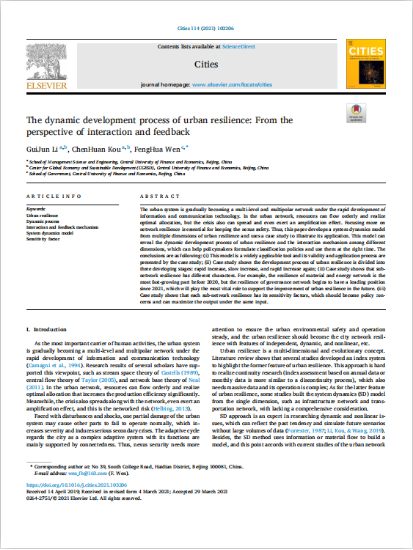 近日,bat365温锋华副教授在我校AA类期刊Cities发表学术论文,题目为The dynamic development process of urban resilience:From the perspective of interaction and feedback.