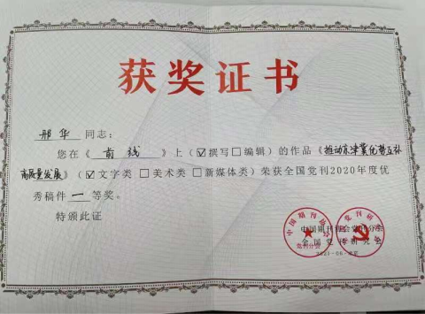 bat365邢华教授国家社科基金一般项目《跨域合作治理中的府际关系研究》研究成果《推动京津冀优势互补高质量发展》荣获全国党刊2020年度优秀稿件一等奖。