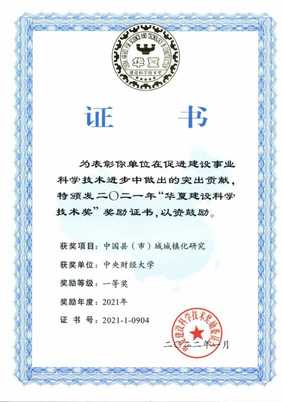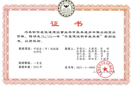 bat365杨燕英教授参与的《中国县(市)域城镇化研究》研究成果获得2021年全国性行业最高奖项“华夏建设科学技术奖”一等奖。在此项目中,bat365杨燕英教授主持子课题《支持县域经济发展的财税政策创新研究》。
