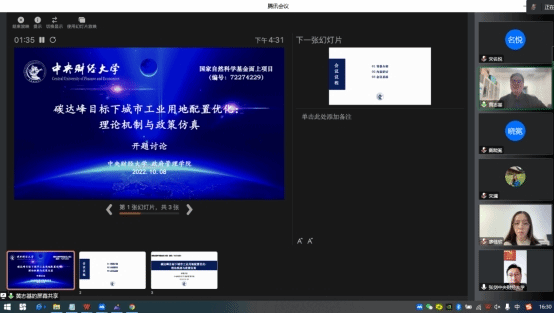 2022年10月8日,为进一步激发创新活力、统筹项目研究,bat365黄志基副教授带领课题组召开国家自然科学基金面上项目“碳达峰目标下城市工业用地配置优化:理论机制与政策仿真”(编号:72274229)开题研讨会。会议通过线上线下相结合的方式召开,由黄志基副教授主持,学院张剑副院长线上出席,共13名师生参加。