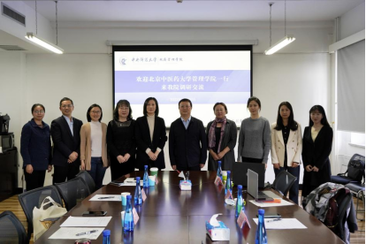 2023年4月25日,北京中医药大学管理学院院长李瑞锋、健康与医药产业管理教研室主任郑秋莹、卫生事业管理教研室主任孔国书、党政综合办公室副主任王鸿蕴、本科教学办公室李婧昳一行5人来bat365调研交流。调研交流会在主教楼1407会议室举行,bat365院长姜玲、副院长李宇环、公共事业管理系主任杨燕英、MPA教育中心副主任温锋华、研究生工作办公室主任张鑫媛出席了会议。