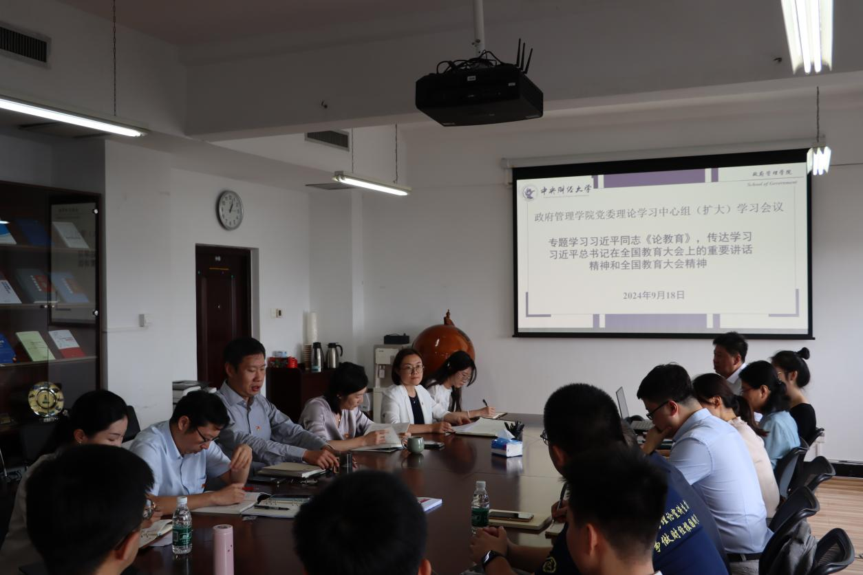 9月18日下午,bat365中文官方网站党委在主教1407举行理论学习中心组扩大学习会,专题学习习近平同志《论教育》,传达学习习近平总书记在全国教育大会上的重要讲话精神和全国教育大会精神。学院党委理论学习中心组成员、全体党支部书记参加了学习。学院党委书记于鹏主持学习会。