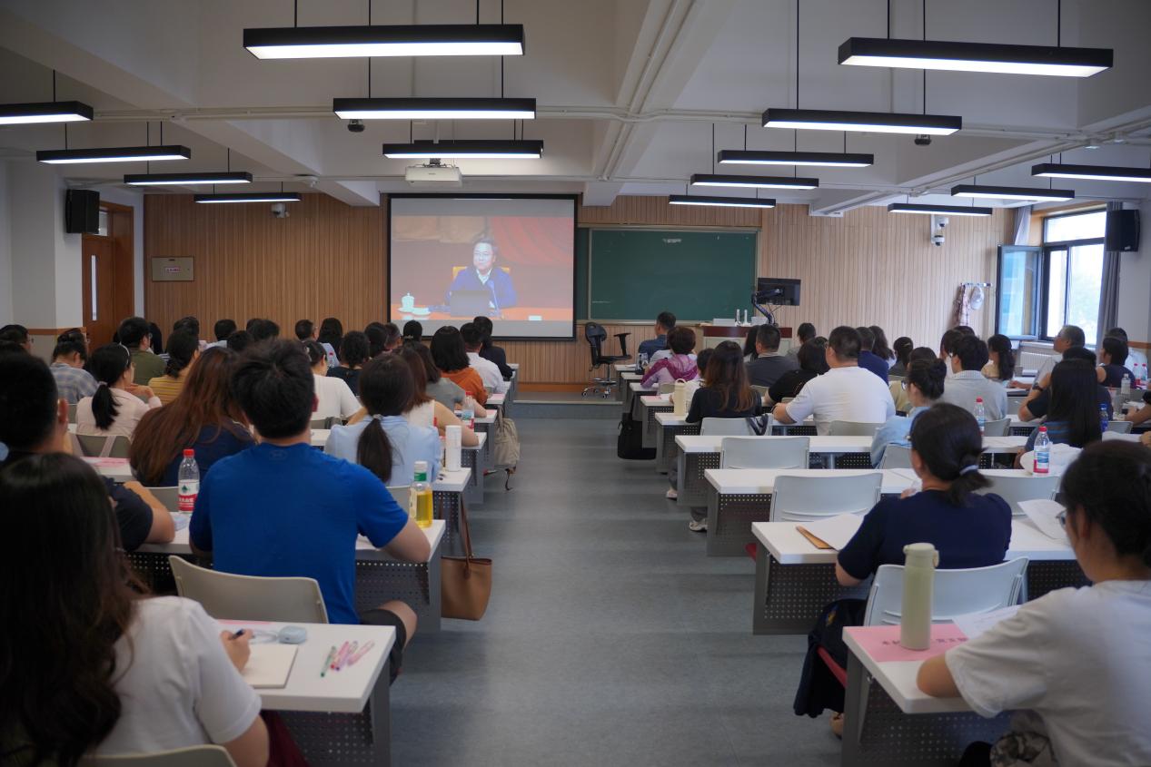 为深入学习贯彻习近平新时代中国特色社会主义思想,推动深入贯彻中央八项规定精神学习教育走深走实,6月30日下午,bat365中文官方网站党委积极响应校党委的号召,组织全体师生党员在学院南路校区主教403参加2025年全校党员集中培训第一课,集体学习中共中央党校(国家行政学院)党的建设教研部副主任祝灵君教授讲授的《学习贯彻习近平总书记关于加强党的作风建设的重要论述和中央八项规定精神》专题课程。bat365中文官方网站党委高度重视集中培训,通过“课前导学+课上共学+课后热学”的全链条“三学”模式,组织全体师生党员认真参加学习。