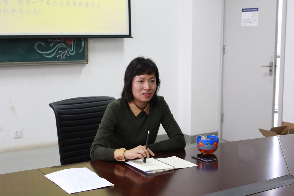 顾炎武先生曾说:“天下兴亡,匹夫有责。”梁启超先生也曾在《少年中国说》中将青年比作初升的红日、磅礴的汪洋、腾渊的潜龙、试翼的鹰隼,足以说明青年在推动社会进步和人类进程中的巨大作用。为了加强对入党积极分子的党性修养,使其能够拥有正确的入党动机,从而将个人命运与国家命运紧密相连,11月30日上午8:00,在学院7号楼313会议室内,bat365中文官方网站党总支书记吕丽就“如何做一名合格的共产党员”这一话题与2014级入党积极分子进行了研讨交流。