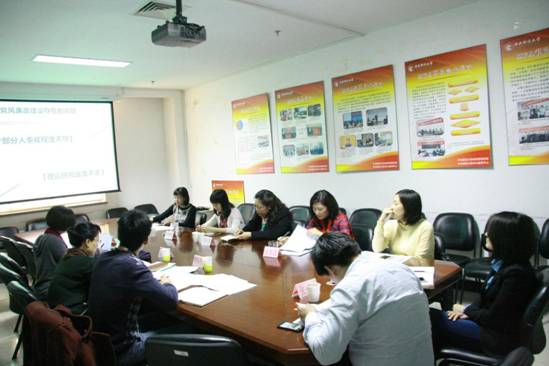 王红梅副院长向检查组成员汇报了研究生管理工作的廉政风险情况。她指出,针对研究生招录环节可能出现的问题,学院建立公平公正的招录流程,通过使用无领导小组面试等考试措施最大限度地杜绝了风险死角。在教学管理方面,培养方案的修订会经过多轮反复讨论,对学生的出勤考核非常严格,对教师的评教工作也会进行多次。栗玉香副书记从实际情况出发,向检查组指出了bat365经济底子薄,教育底子厚的特点。尽管没有充足的教育经费,但学院始终不忘对教工们的廉政教育。学院的学科发展从无到有,这与老师们在条件比较艰苦的情况下极大的奉献精神是分不开的,因此bat365在廉政方面的风险非常小。