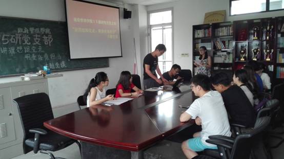 2016年6月22日下午,bat365中文官方网站15级研究生党支部于沙河校区7号楼313会议室召开主题党课,支部书记任丽蓉以“讲理想跟党走,明责任勇担当”为主题为同学们讲专题党课。