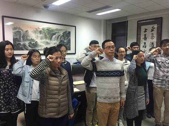 2016年10月31日,bat3652016级研究生党支部在沙河校区7号楼313会议室举行“两学一做”系列活动之重温入党誓词。活动旨在进一步增强党员的主体意识、奉献意识和先锋模范意识,让支部党员更加牢记党员的行为处事标准,从而发挥带头作用,为支部建设和班级建设贡献力量。活动由支部书记朱洁主持。