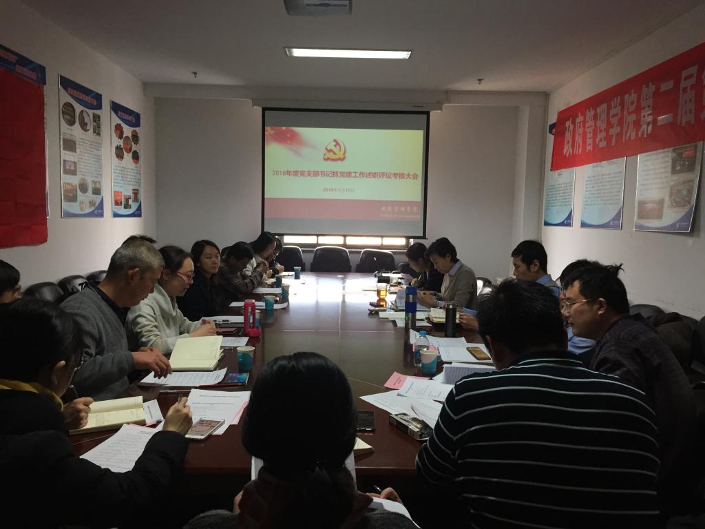 会议上,行政管理系党支部书记李文彬教授、公共事业管理系党支部书记周湘林副教授、城市管理系党支部书记陈红霞副教授、资源与环境管理系党支部书记吕阳副教授、国际政治系党支部书记张占顺副教授等5位教师党支部书记现场述职,其他6位党支部书记书面述职,与会人员对履职满一年的8位党支部书记进行了现场评议考核。现场述职上,5位教师支部书记围绕学习贯彻落实习近平新时代中国特色社会主义思想和党的十九大精神、推进“两学一做”学习教育常态化制度化、贯彻全国教育大会和各级思想政治工作会议精神、抓党建促进支部建设等方面,重点介绍了自己在2018年的履职情况,展示了支部党建工作开展的特色做法和亮点,同时对支部党建工作存在的工作难点和问题进行了阐述,提出了进一步加强基层党组织建设的思路和措施。