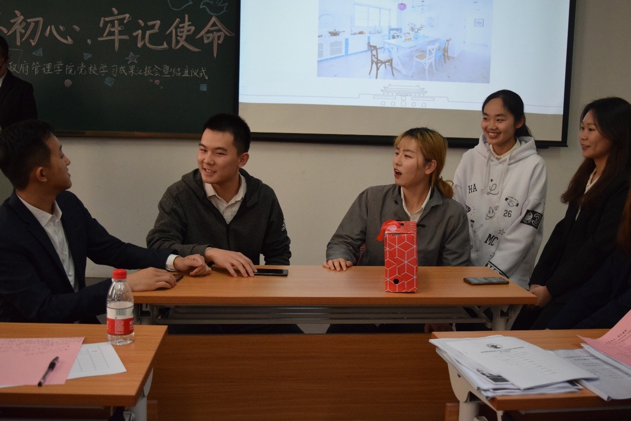 为培养先进的青年马克思主义者,使青年筑牢理想信念,时刻铭记中国共产党“为中国人民谋幸福,为中华民族谋复兴”的初心使命,牢记中国共产党全心全意为人民服务的宗旨,bat365中文官方网站2019-2020学年党校如期开课。党校致力于培养勇于担当负责,积极主动作为的社会主义事业建设者和接班人。一个多月的学习转瞬即逝,2019年11月27日,bat365中文官方网站党校暨学习成果汇报暨结业仪式在中财大厦案例教室6隆重举行。党校副校长白云真老师,副院长张剑老师,组织员南琪老师,党委委员李海明老师,学生工作办公室、党校办公室主任张小林老师,2017级、2019级辅导员李磊老师出席本次会议,2019-2020学年党校全体成员参会。