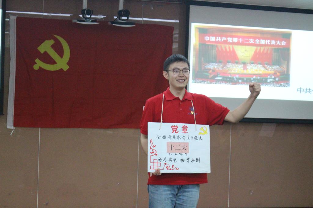 各党小组进行学习成果展示。国政党小组《精忠报国,一脉相承》,以朗诵以时间为轴,用诗词诵吟,爱国情怀激荡,文化自信尽显。行管党小组《我,名叫中国共产党章程》情景剧,以党章自述的形式,生动讲述了党章发展的历程。城管公管党小组朗诵《梅——共产党人守初心、担使命》,以梅咏志,向梅看齐,抒了新时代共产党人的宣言。