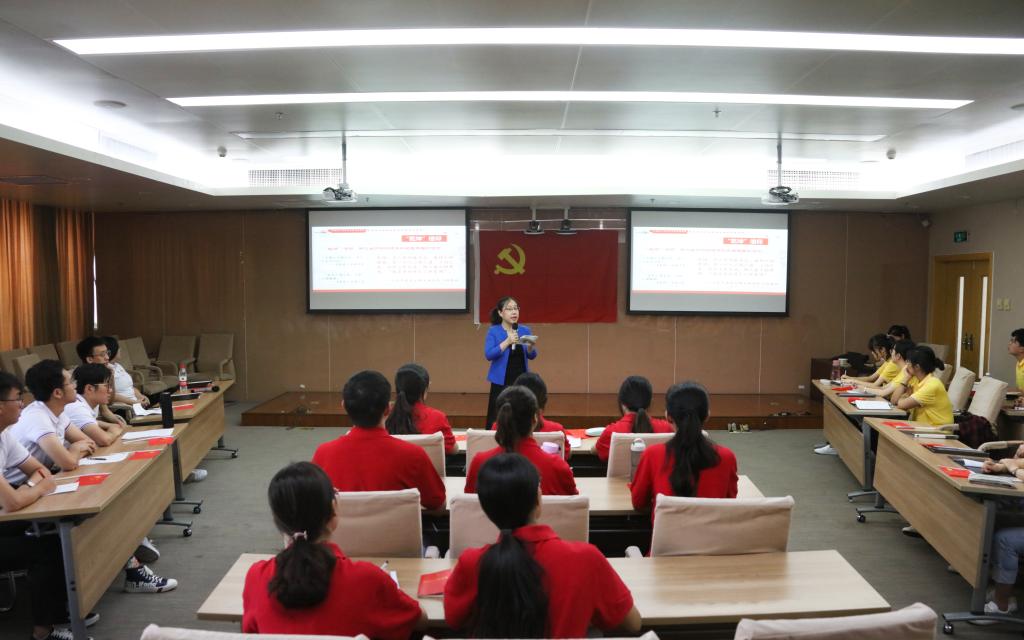在激昂的国歌声中,活动拉开序幕。首先,由bat365中文官方网站本科生党支部书记李莎莉老师为大家介绍支部特色活动方案“瞳聚计划”:“瞳聚计划”模型形状似“眼睛”,眼睛若明亮,世界就光明;最核心的瞳孔便是“不忘初心、牢记使命”,分别运用“战略定力”“抓铁有痕”“实事求是”“群众路线”等思想和方法健全活动体系,瞄准“理论学习有收获”“思想政治受洗礼”“干事创业敢担当”“为民服务解难题”“清正廉洁做表率”五大目标制定“研读”“研学”“研行”“研用”“严身”五大实施方案。通过这一计划,全面高质量开展“不忘初心、牢记使命”主题教育。