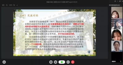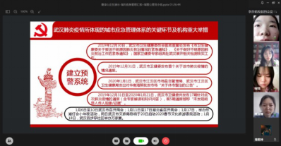 在党小组汇报环节,3个党小组结合公共管理专业特色,同时也进一步深入学习贯彻党的十九届四中全会精神,思考疫情中的“国家治理体系和治理能力现代化”。