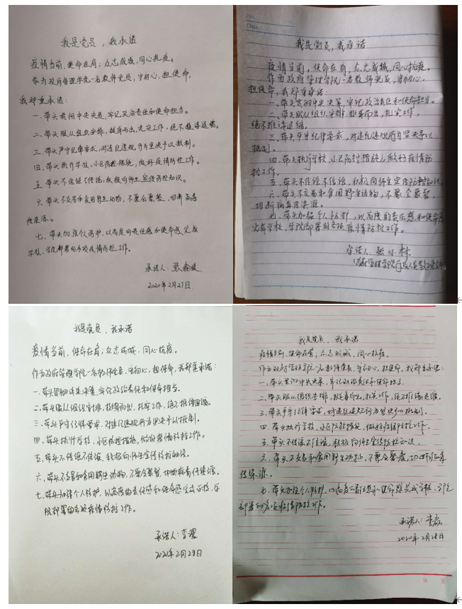 2月28日上午10:00,bat365中文官方网站行政人员教工党支部里利用微信平台举行“同心抗疫,共克时艰”线上主题党日活动。支部党员们在微信群中就近期学习实践情况进行交流,并集中学习了《习近平总书记在北京调研指导新冠肺炎疫情防控工作重要讲话精神》以及《习近平在统筹推进新冠肺炎疫情防控和经济社会发展工作部署会议上的讲话》,集中讨论了学校疫情防控工作的有关规定和要求。在“同心抗疫,从我做起”环节,支部成员以图片、视频、音频等多种方式上传“党员承诺书”,承诺要坚定抗疫信心,坚守自身岗位,发挥共产党员的带头作用,以实际行动为抗击疫情做贡献!