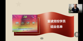 会议进入第二环节:党校结业仪式。入党积极分子代表刘博雅、发展对象学员代表李鸿斌分别发言,回顾党校学习生活,分享学习感悟。学员刘博雅表示,在党校除了学习了理论知识外,自身思想也无形中受到教化。在党校的经历告诉她,唯一正确的入党动机就是为人民服务。作为入党积极分子,青年应先从思想上入党,再从行动上入党。学员李鸿斌表示,2020年,危难与奇迹并行,党的抗疫作为使他明白,越是危难时刻,越是需要坚持。通过党校的学习,他深刻地认识到,坚守党员标准关系到党性、党的战斗力、党与人民群众的关系,所有想向党靠近的青年都需要严格坚守党员标准。他也同大家分享了自己的入党动机,激励自己坚持服务人民、奉献自我的初心。