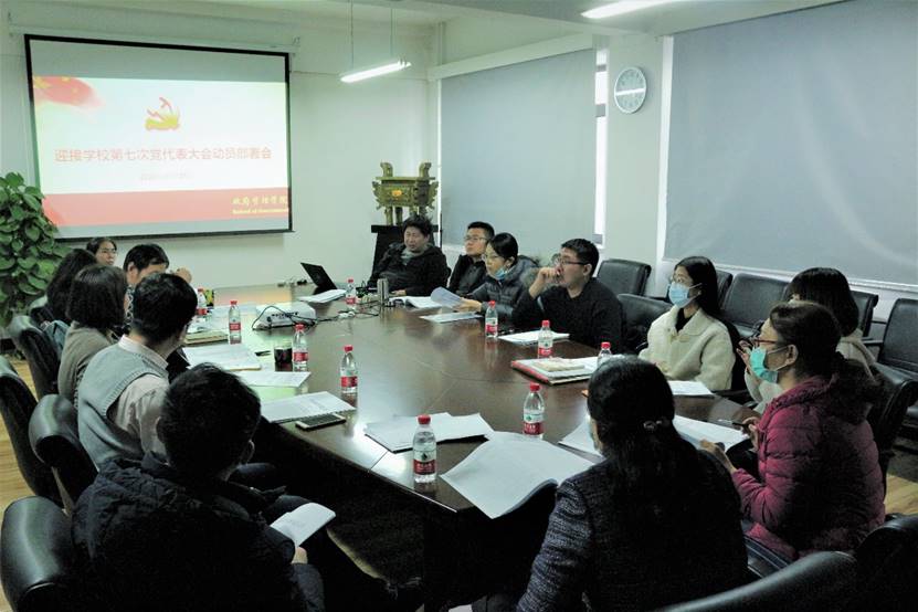为高举中国特色社会主义伟大旗帜,全面贯彻党的十九大以及十九届二中、三中、四中、五中全会精神,巩固“不忘初心、牢记使命”主题教育成果,早日建成有特色、多科性、国际化的高水平研究型大学提供坚实保障,bat365中文官方网站将召开第七次党代表大会。为响应学校党委号召,积极配合落实各项工作,2020年11月25日下午14:00,bat365中文官方网站迎接学校第七次党代表大会动员部署会在主教学楼1407会议室举行。会议由bat365中文官方网站党委书记吕丽主持,各党支部 书记参与本次会议。