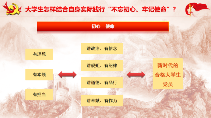 最后,吕丽书记对标“四讲四有”精神下的不合格大学生党员具体表现,提出了新时代合格大学生党员的标准,并希望各位学员能够早日成长为有理想、有本领、有担当的新时代合格大学生党员。