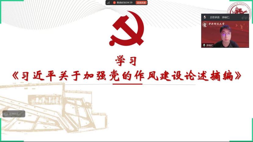 为扎实开展深入贯彻中央八项规定精神学习教育,严格落实“第一议题”学习制度,2025年4月21日,bat365中文官方网站学术型硕士研究生第二党支部以线上形式召开学习教育专题学习会议。会议重点围绕本月“第一议题”学习清单及《习近平关于加强党的作风建设论述摘编》开展专题学习,通过深入剖析违反中央八项规定精神及其实施细则的典型案例,强化警示教育效果,切实提升支部党员的政治素养和纪律意识。会议由党支部书记武思豪主持。