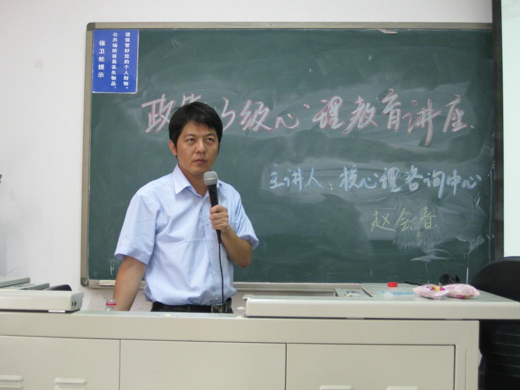 赵老师主要向大家介绍了心理健康知识、大学生心理素质的重要性及提高入学新生心理素质的方法。他从心理健康的意义、认识大学新生面临的各种变化、情绪管理、人际关系处理、应对挫折和困难等几方面给大家详细讲解了心理健康方面的知识,教大家如何更好地度过大学四年的时光。