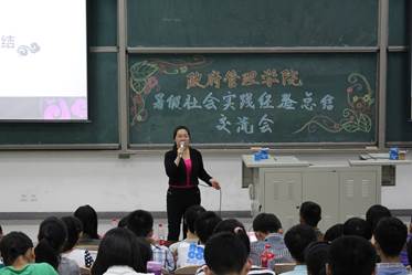 之后,栗玉香老师做了总结性发言。栗玉香老师指出:“大家是刚刚入学的新同学,还不了解社会实践的重要性。大家应该向学长学姐多多学习,多多请教,走出课本,做好社会实践,做好人生规划。”栗老师强调大学生应该将知识应用于实践,注重个人全面发展,在踊跃参与的同时,注重诚信规范,争创佳绩。活动最后,在场的同学就读书的问题和栗老师亲切地互动,同学们与老师共同交流读书经验。