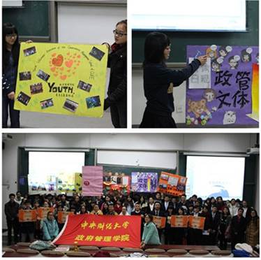 《非诚勿扰》的节目搬到了中财校园——这便是文体部不狃俗套的部门展示模式。幽默风趣的表演配合着精心设计的ppt,他们着实深深吸引了在场观众的眼球。通过《非诚勿扰》的表演,文体部的学生干部们创造性地表达了他们对于优秀学生干部的深刻认识,赢得广大同学们的由衷共鸣。