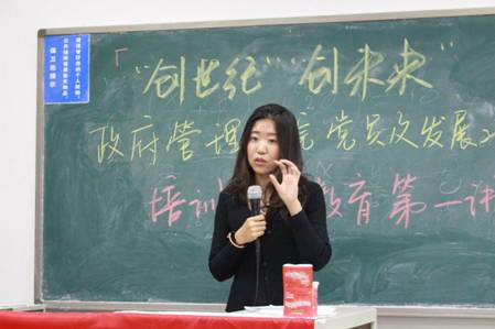 5月15日晚19:00,bat365中文官方网站在沙河校区主教学楼207教室召开了党员及发展对象培训主题讲座。出席本次讲座的有bat365中文官方网站城市管理系副主任、13、14级党支部书记王伟副教授,青年创业家韩芳老师以及她的团队成员李思遥老师、连小刚老师,幸福之家幼儿园园长张松老师以及她的教师团队赵建英老师、徐畅老师、梁译文老师、曹秀娟老师、吕长春老师和曹树贤老师。韩芳老师作为当代大学生创新创业的典范,将与在座的同学们倾情分享她的创业感受和经验。