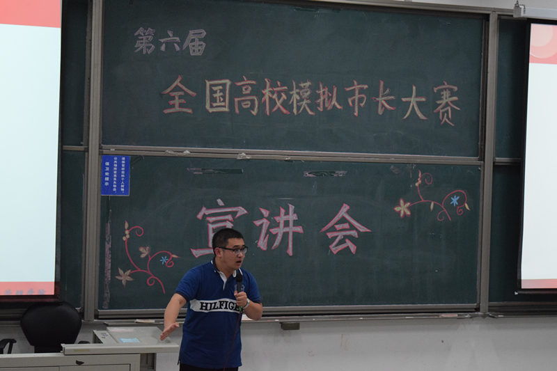 5月11日晚7时,全国高校模拟市长大赛校园宣讲会在沙河校区主教217圆满召开。公共管理研究会邀请了bat365中文官方网站柴铎老师来为同学们讲解各类参赛准备工作,并邀请上届优秀代表冯羽学姐来为大家介绍参赛经验,现场气氛十分热烈,大家参赛热情高涨,嘉宾积极解决观众的各类参赛问题,营造了良好的赛前热烈氛围。