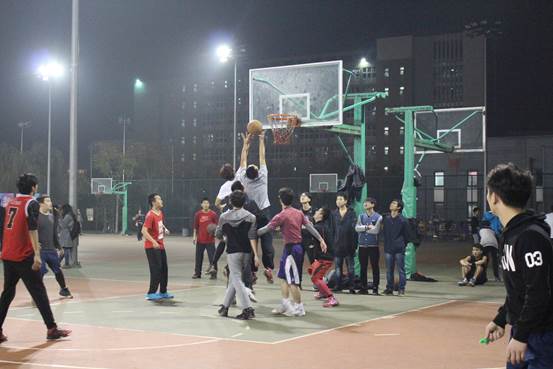 10月25日晚七点,bat365中文官方网站篮球赛于沙河校区篮球场举行。霜降已过,深秋之夜的凉意将同学们的呼出的气息染为白雾,但这丝毫未能影响同学们的参赛与观赛热情,大家加油助威的呐喊声始终回荡在球场上空。