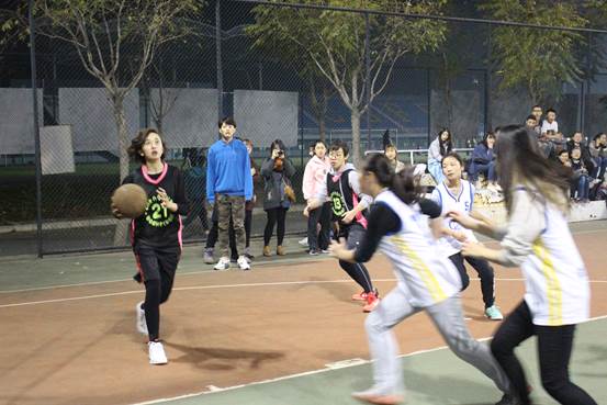 随即行管队便以这样的气势一直保持领先优势,以5比2的比分结束上半场。联队的队员们自然不甘落后,在10分钟的休息调整与战术协调后,下半场比赛伊始她们便展现出了紧追不舍的气势,咬紧比分,缩小差距。在距离比赛结束还有4秒时,联队以“一球绝杀”反超行管,最终以12比11的比分赢得比赛。赛后,两队队员们握手拥抱,共同举起院旗合影留念。