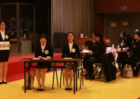 第三环节是有趣而刺激的情景纠错,所有队伍需观看三段情景短片并记下其中的若干礼仪错处,在影片结束后用抢答器抢得答题机会。这个环节旨在考验团队合作能力与细心程度,同时还有必不可少的反应速度。在紧张激烈的氛围中,各团队齐心协力找出了许多影片中演示的错误和不规范礼仪行为,甚至许多原题答案中没给出的细节之处也被团队发现,大大提升了比赛的实际效果。