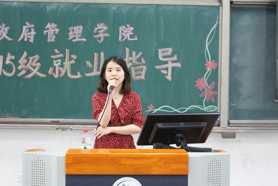 2015级本科生辅导员黄莎老师简要介绍了本次会议的目的和流程后,李莎莉老师从国内升学、出国留学以及就业三个方面为同学们展开了毕业意向分析。