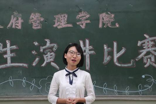 回想起从准备到参赛的整个过程,我深怀感激!感谢学校、学院特地安排了这次比赛,为我们新生提供了一次深入了解校园文化并能够展示自己的机会;感谢学长学姐们精心筹备,并给予我莫大的支持和鼓励,尤其是柳欣悦学姐和李如玉学姐对我的耐心指导让我不仅在演讲水平上得到提高,更收获了内心的温暖;感谢各位评委老师的悉心教导,让我对“如何作一个好的演讲者”有了更深刻的认识,也对自己的声音条件、语言风格有了更深入的了解;感谢一同参赛的各位“才子才女”,他们的精彩表现充分展现出我们“中财人”的风采。能够和他们相识,并成为好友,我是幸运的,更是幸福的。