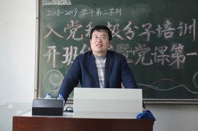 2019年4月3日下午4:00,bat365中文官方网站2018-2019学年第二学期入党积极分子培训班开班仪式暨党课第一讲在主教学楼409教室准时开始,院党委副书记、党校副校长白云真副教授,院学生工作办公室主任、党校办公室主任张小林老师出席。