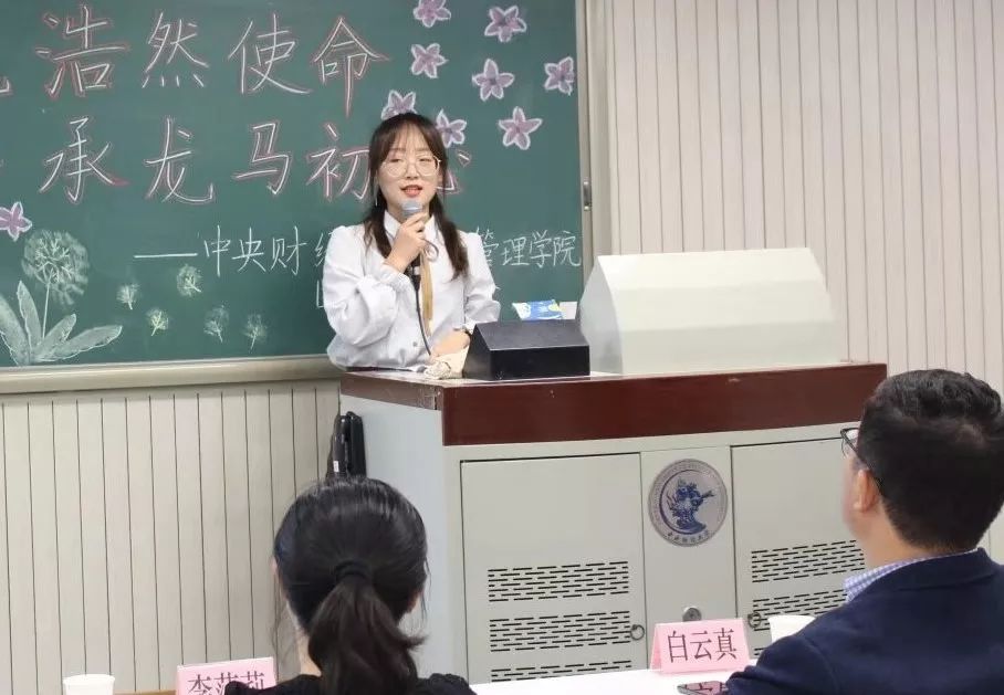 紧接着,团委副书记刘家琦老师致大会开场词。刘家琦老师对全体学生干部提出了两点要求:首先,希望学生干部们做到勤奋、踏实、敬业、有责任心,只有这样才能够更好的担当责任;同时,也希望学生干部们做到“六个一”:站位高一级、学习深一层、审阅多一遍、担当多一些、风险意识强一度、坚持长一点。最后,刘家琦老师更是将自己对在座的学生干部的满满期许编成了朗朗上口的顺口溜,幽默风趣却又满是对学生干部的关心与爱护。