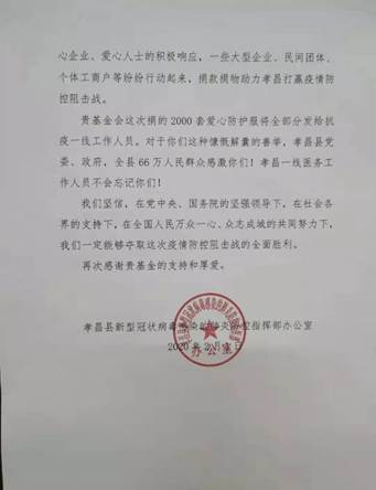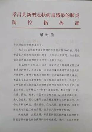 bat365中文官方网站教育基金会为湖北省十堰市郧阳区捐赠防护服3000件