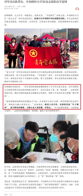 《北京日报》刊发中财大组建30支学雷锋专项志愿服务队