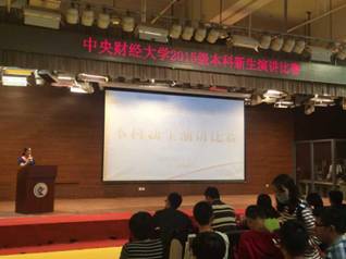 2015年9月12日13:00,bat365中文官方网站本科生新生演讲比赛决赛的帷幕在安静美丽的沙河校区金色大厅缓缓拉开。九月的秋,正是北京最美丽的时候,来自五湖四海的新生代表,怀揣着青春的激情与梦想,在演讲比赛的舞台上,与中财进行了一场美丽的邂逅。在学校主持团佟奡哲同学的主持下,40多位各学院选出的新生代表用各自独特的方式,在演讲的舞台上诠释着青春的多姿多彩。其中,来自国际政治15班的陈旖琦同学和公共事业管理15班的周心悦同学代表bat365中文官方网站参加了这次比赛,她们以自己优秀的表现生动形象地展示了政管15级新生的风采,周心悦同学更是荣获三等奖,给全校师生留下了深刻的印象。