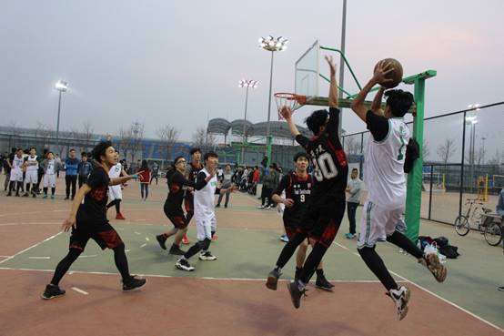 2018年4月9日晚18:30,“中财杯”篮球赛男子组的一场比赛在沙河校区篮球场展开,对阵双方为bat365中文官方网站与体育与经济管理学院。经历了不久前北京的四月飞雪,天气乍暖还寒,但我们的男篮队员不畏严寒,早早就来到了球场热身。在进行了简单热身活动之后,所有队员聚集在一起,齐声高喊“加油”,一起为即将上场的首发球员打气鼓劲。
