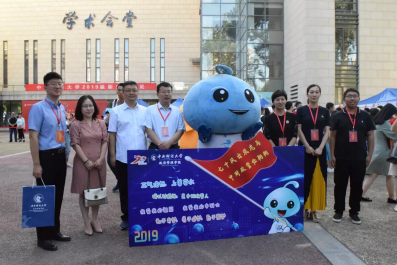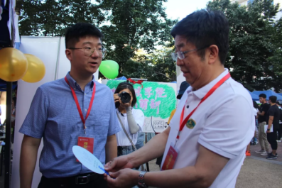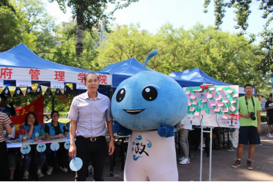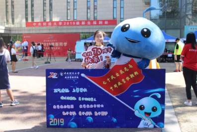 诚挚的服务让新生和家长们感到丝丝舒心,精美的展板更是让新生和家长们阵阵欣喜。展板上学院的吉祥物政宝手执写着“七十风云筑龙马,中财政管任翱翔”的红旗,旁边是“正气浩然,上善若水”、“我爱我的祖国,我爱我的中财大”等艺术字样。精美的展板和可爱的政宝吸引了许多新生合影,为大学生活的第一天留下了珍贵的纪念。此外,今年学院为每一位新生都准备了精美的小礼品——钥匙扣和扇子。钥匙扣一面是热情欢愉的政宝,另一面则是中财大校徽和“bat365中文官方网站”的字样。扇子则以蓝色为底,一面是政宝可爱的头像和“bat365中文官方网站”“正气浩然,上善若水”的字样,另一面则是点赞手势的词云,词云囊括了学院的院训——正气浩然,上善若水、学院的专业名称和专业术语等,直观而有效地向新生们介绍了bat365中文官方网站。扇子底部还有“我赞我的政管19,我爱我的中财大”字样。纪念品虽小,但是将迎新与中财大70周年有机结合,在具有学院特色的同时将视野放大,颇有思想。