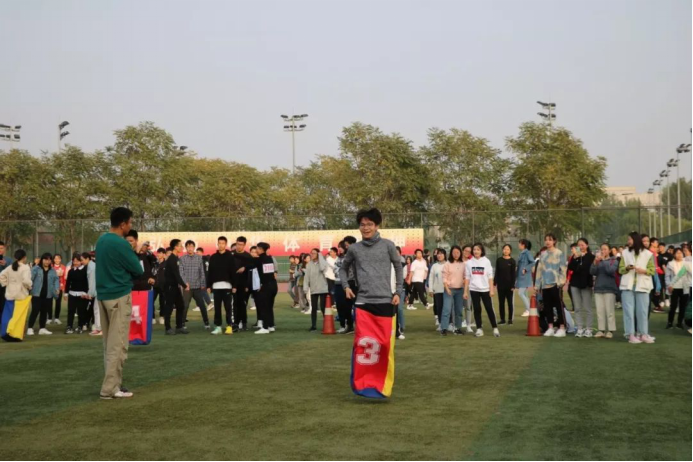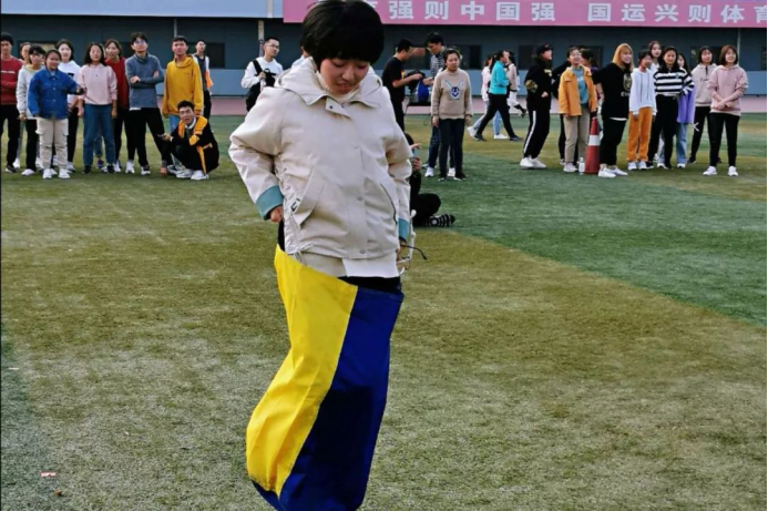下午3:30,沐浴着秋日的暖阳,政管代表队的同学们来到了袋鼠跳的赛场。二十位同学分成两队,接力完成袋鼠跳,力争在最短的时间内完成任务。同学们奋力向前跳,发丝拂面不顾,旁人说笑不顾,他们矫健的身影起起落落,带着政管人的坚韧与团结,背负着政管的荣誉,他们一往无前!