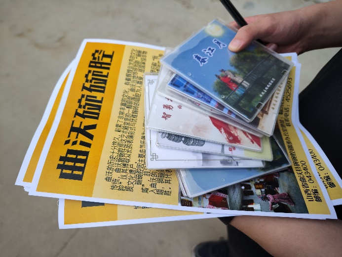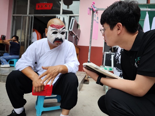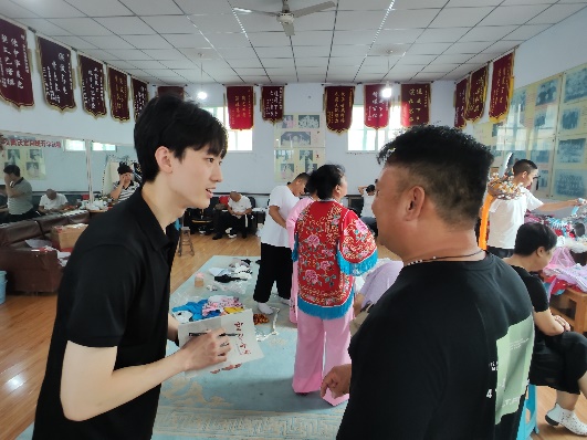 729日,队员们带着戏团提供的戏剧光碟和团队制作的宣传单,走进曲沃县乐昌镇马庄村、苏村、西南街等村子,在碗碗腔戏剧的听众中开展了广泛采访调查。对于碗碗腔传承与发扬的难点,村民们阐述了自己的看法——“村里人口流失,碗碗腔听众也越来越少了学唱戏挣不到钱,年轻后生学这行没出路”……非遗的传承发扬道阻且长,成员们更加深刻体会到作为青年的使命担当。小队成员杨拓航表示:中华优秀传统文化是我们的根脉,身为中国青年,我们会保护根脉、立足根脉,让老祖宗留下来的东西在新时代焕发新的色彩!